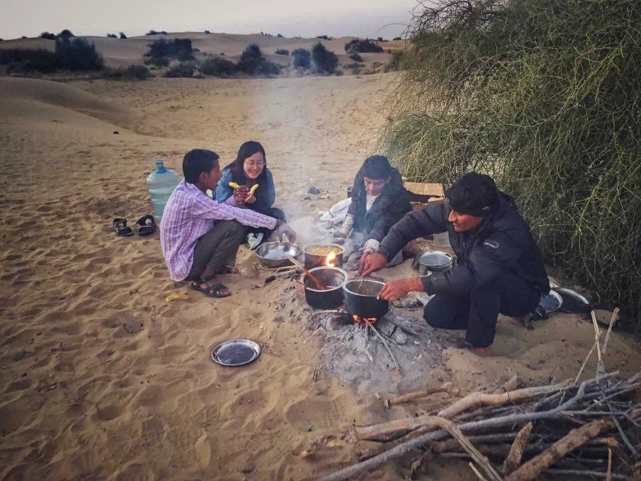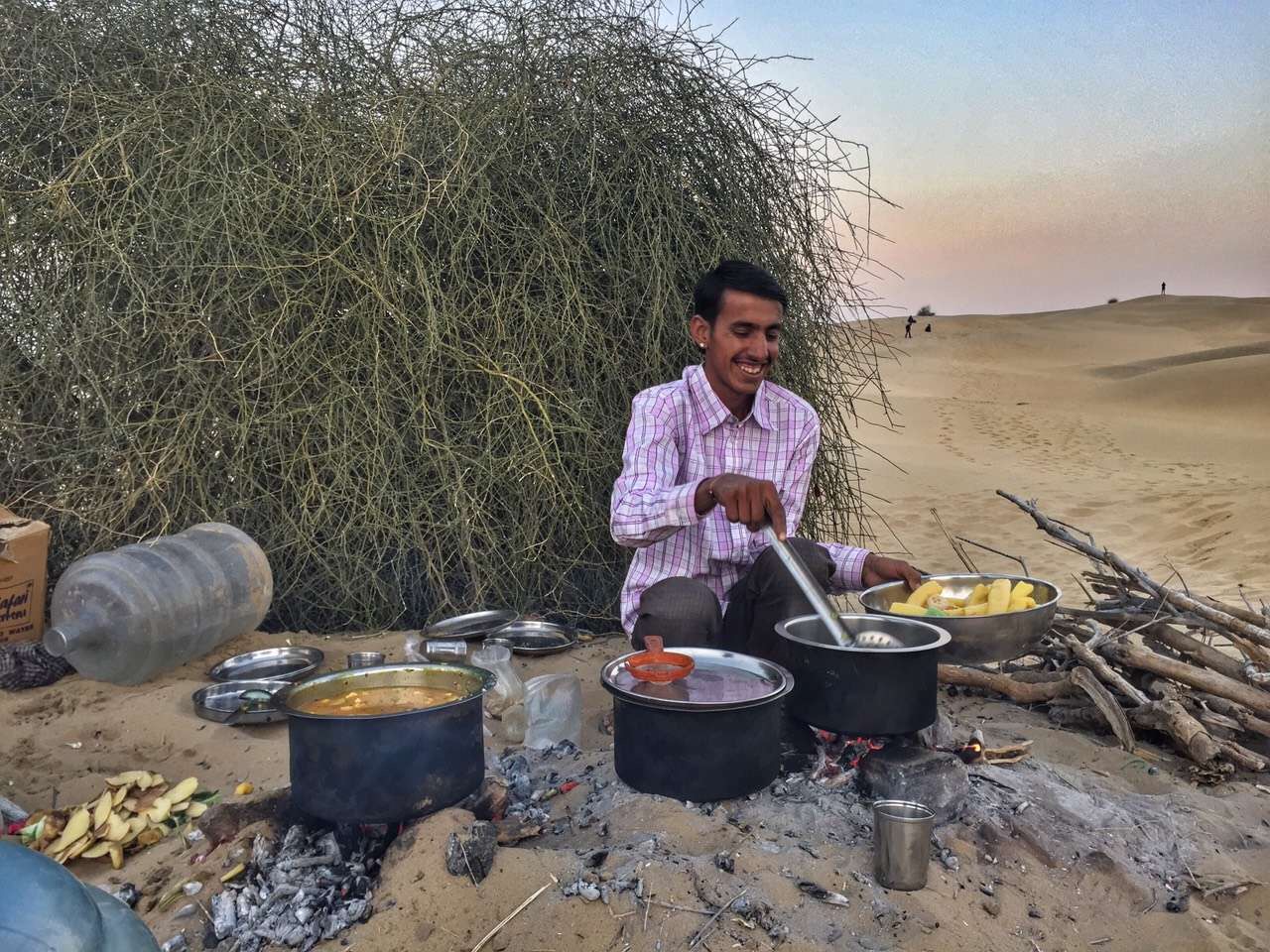 Ride a camel into the sunset, visit local villages and be entertained by camel guys while having delicious dinner including Tawa Roti, Mix veg, rice and spices. Live entertainment under the start with our camel boys with instrument as Bottles, Plates and Claps under the star around camp fire.
